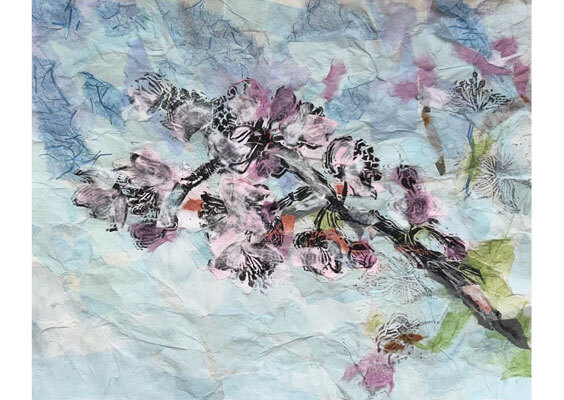 PDiM 2025 The JPP prize winner @brendakaybrwn, "Springtime", chine collé with a variety of washi, including Kozuke White, Haini Kozo, and Kinwashi White.